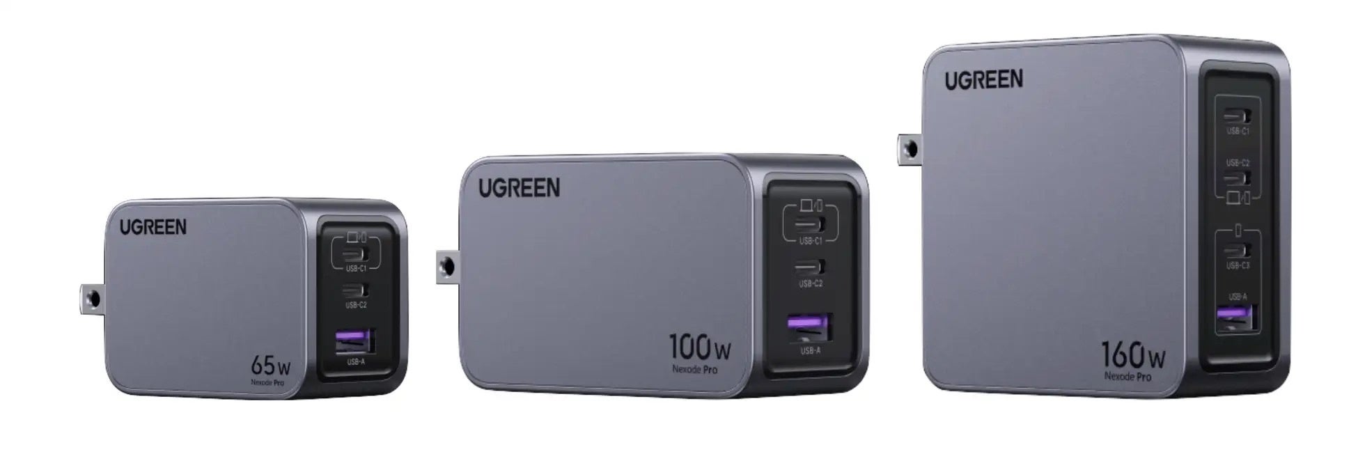 UGREEN Nexode Proシリーズは、GaN(窒化ガリウム)を採用した最新チップ「GaNInfinity」を採用、UGREEN独自のスタッキング技術「Airpyra™」と組み合わせることにより、歴代UGREEN製USB充電器の中で総出力に対し最もコンパクトな設計を実現しました。シリーズ中もっとも小型のNexode Pro 65Wは、手のひらサイズで115gと軽量ながら最大出力65Wという大パワーを発揮します。
