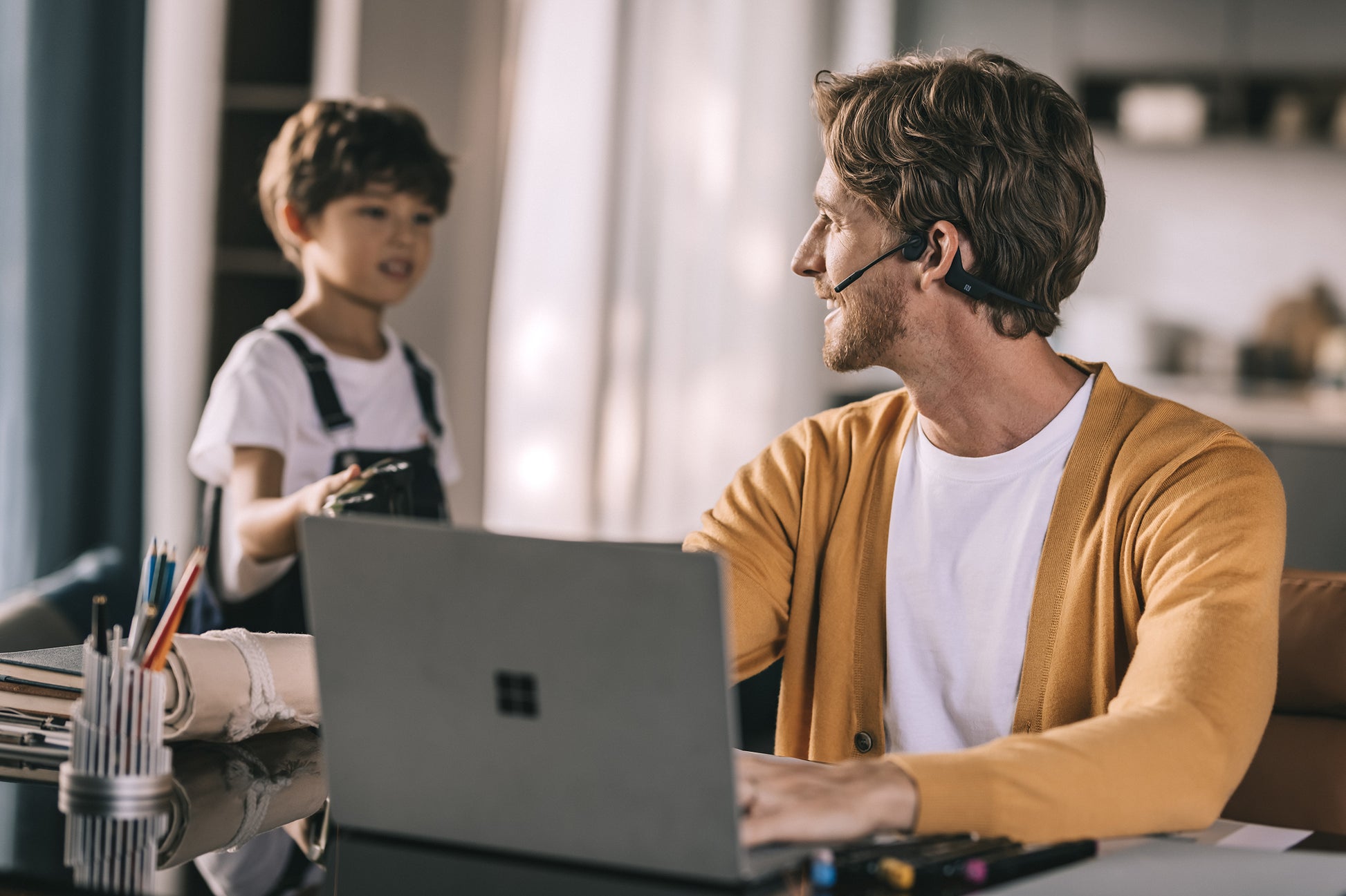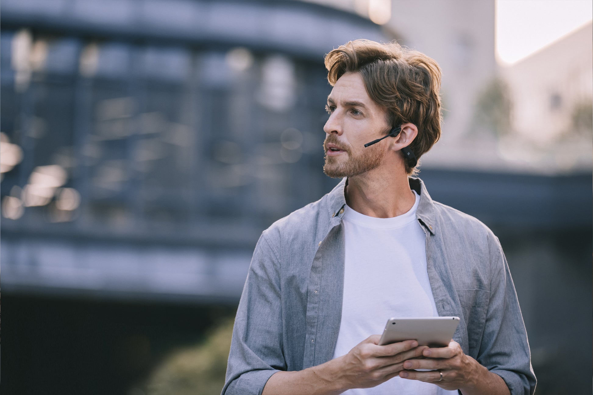 自宅、オフィス、または外出先等で業務を進めるにあたって、多くの場合、周囲の状況や気配の認識が必要になります。OpenComm2 UCは、オープンイヤー設計により、周囲の状況とのつながりが維持されるため、隣からの声も聴き逃すことはありません。