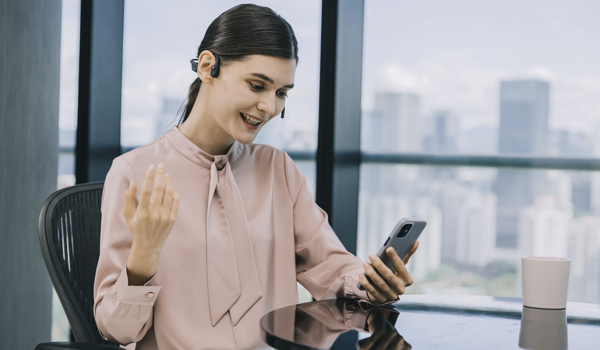 オープンイヤーは通話中の自分の声の確認にも効果を発揮します。オフィス、コーヒーショップ、空港など、どこにいても、オーディオ制御を備えた高度なオープンイヤー設計によって、自分の声の大きさを常に認識できるため、周囲の人に迷惑をかけることもありません。