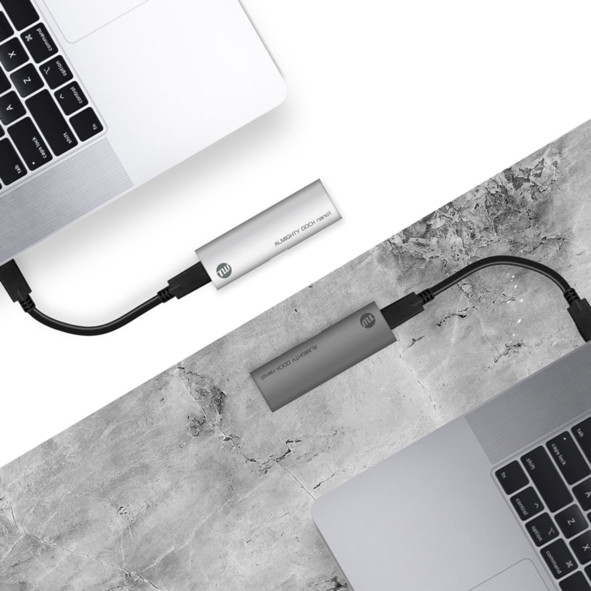 ALMIGHTY DOCK nano1はMacBook Pro / Airと色合わせのしやすいシルバー、スペースグレイの2色からお選びいただけます。本体部分には放熱性の高い素材であるアルミニウム合金を採用し、熱がこもりにくい設計となっており、複数のポートを同時に使用したときも負担が少ない構造となっています。