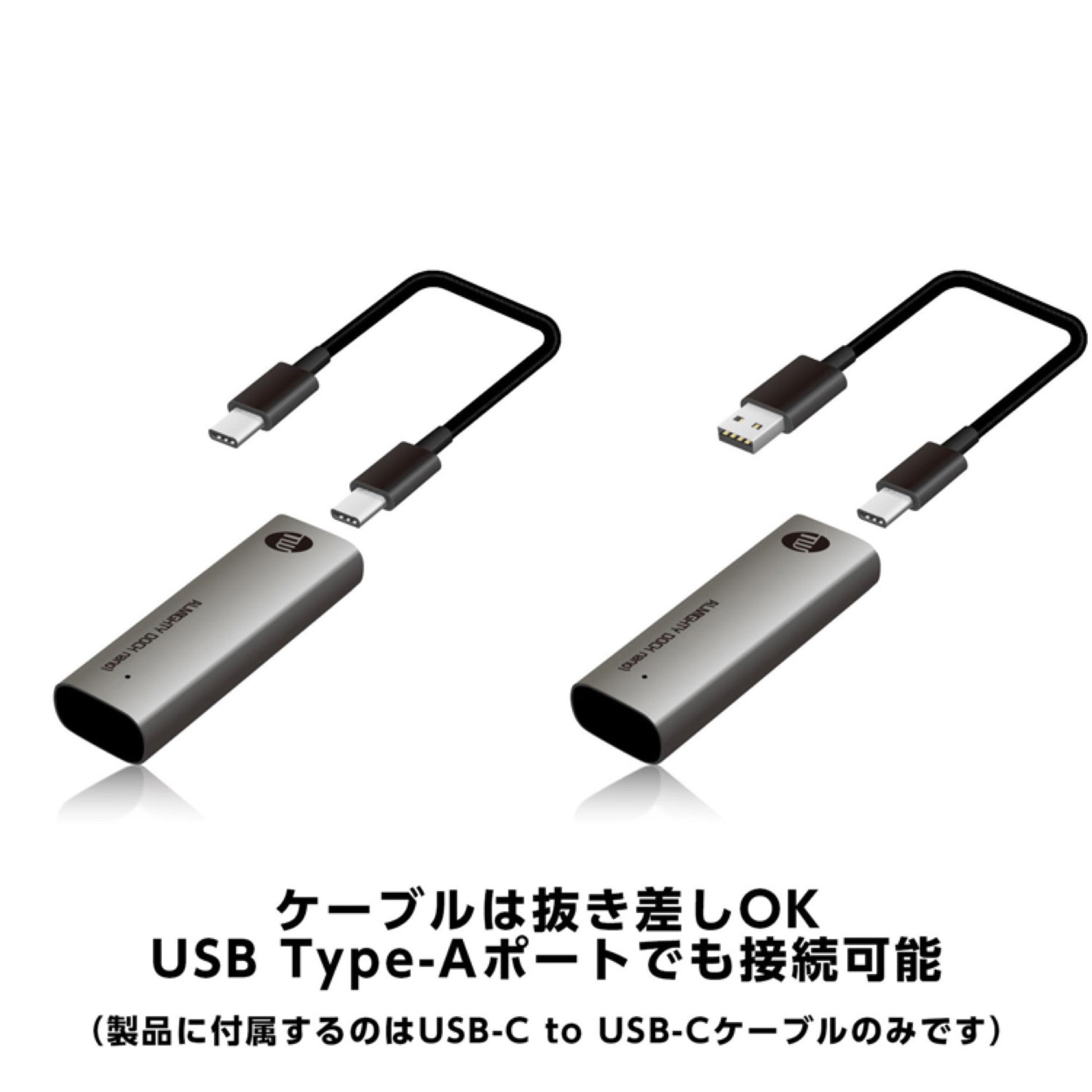 ALMIGHTY DOCK nano1のケーブルは抜き差しOK。製品には約20cmのケーブルが付属していますが、一般的なUSB Type-Cケーブルと互換性があるため、これより長いケーブル、または短いケーブルと差し替えることにより、自宅のリビングやオフィスなど、場所に合わせて使いやすい長さで使用できます。